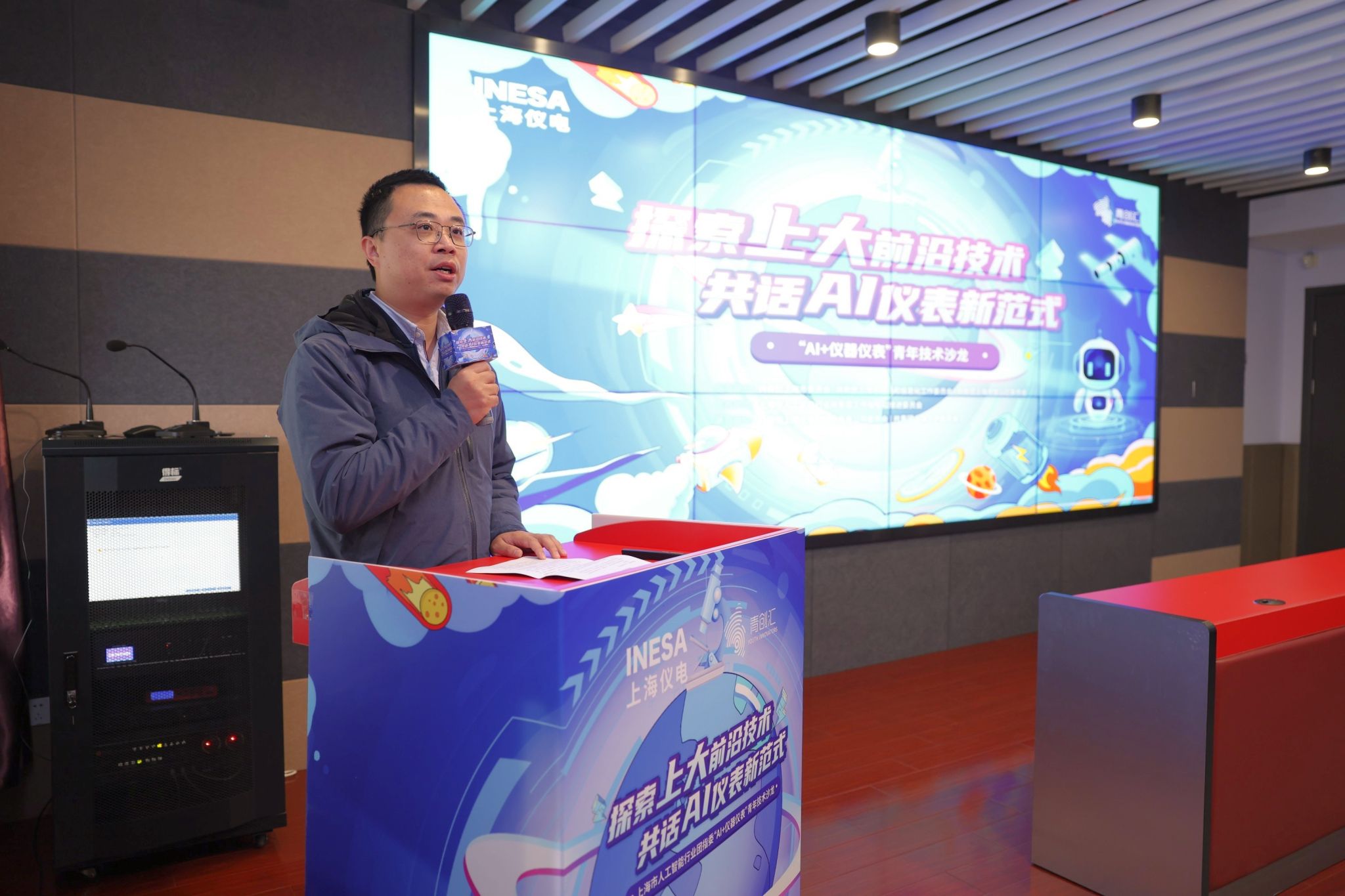 当人工智能遇见仪器仪表,会碰撞出怎样的创新火花?2025年12月23日下午,一场聚焦“AI+仪器仪表”的青年技术沙龙在机自学院伯时会堂火热展开。本次活动由共青团上海市委员会、共青团上海市经济和信息化工作委员会、共青团上海市宝山区委员会指导,上海市人工智能行业共青团工作指导和推进委员会主办,共青团上海仪电(集团)有限公司委员会、共青团上海大学委员会共同承办。来自市经信委系统、宝山区相关企业、上海大学及上海仪电的50余位青年专家和代表齐聚一堂,围绕技术融合与协同创新展开了一场既“硬核”又“有料”的对话。