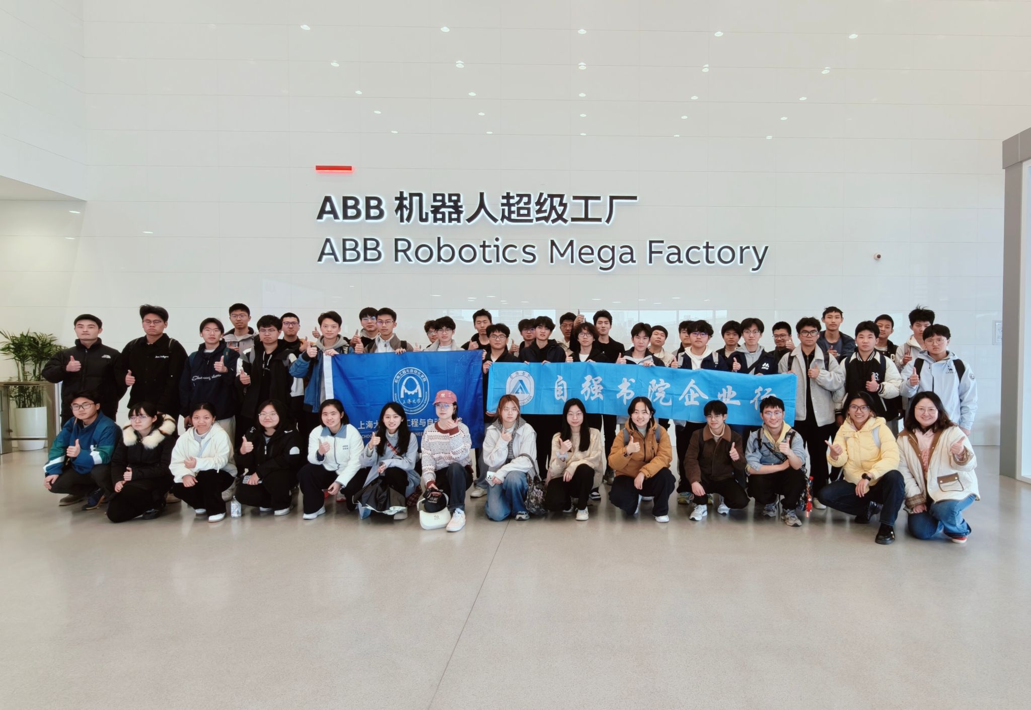 为深化产教融合,拓宽专业视野,引导学子明晰职业规划,3月27日下午,自强书院、机自学院组织大一、大二学生前往ABB机器人超级工厂开展实地参观与交流活动。本次活动以“实地参访+校友交流”双环节形式,让同学们近距离感受智能制造前沿魅力,收获专业与成长指引。