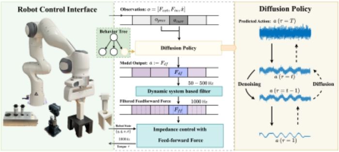 2、Yansong Wu, Zongxie Chen, Fan Wu*, Lingyun Chen, Liding Zhang, Zhenshan Bing, Abdalla Swikir, Alois Knoll, Sami Haddadin, TacDiffusion: Force-domain Diffusion Policy for Precise Tactile Manipulation, IEEE International Conference on Robotics and Automation (ICRA), 2025